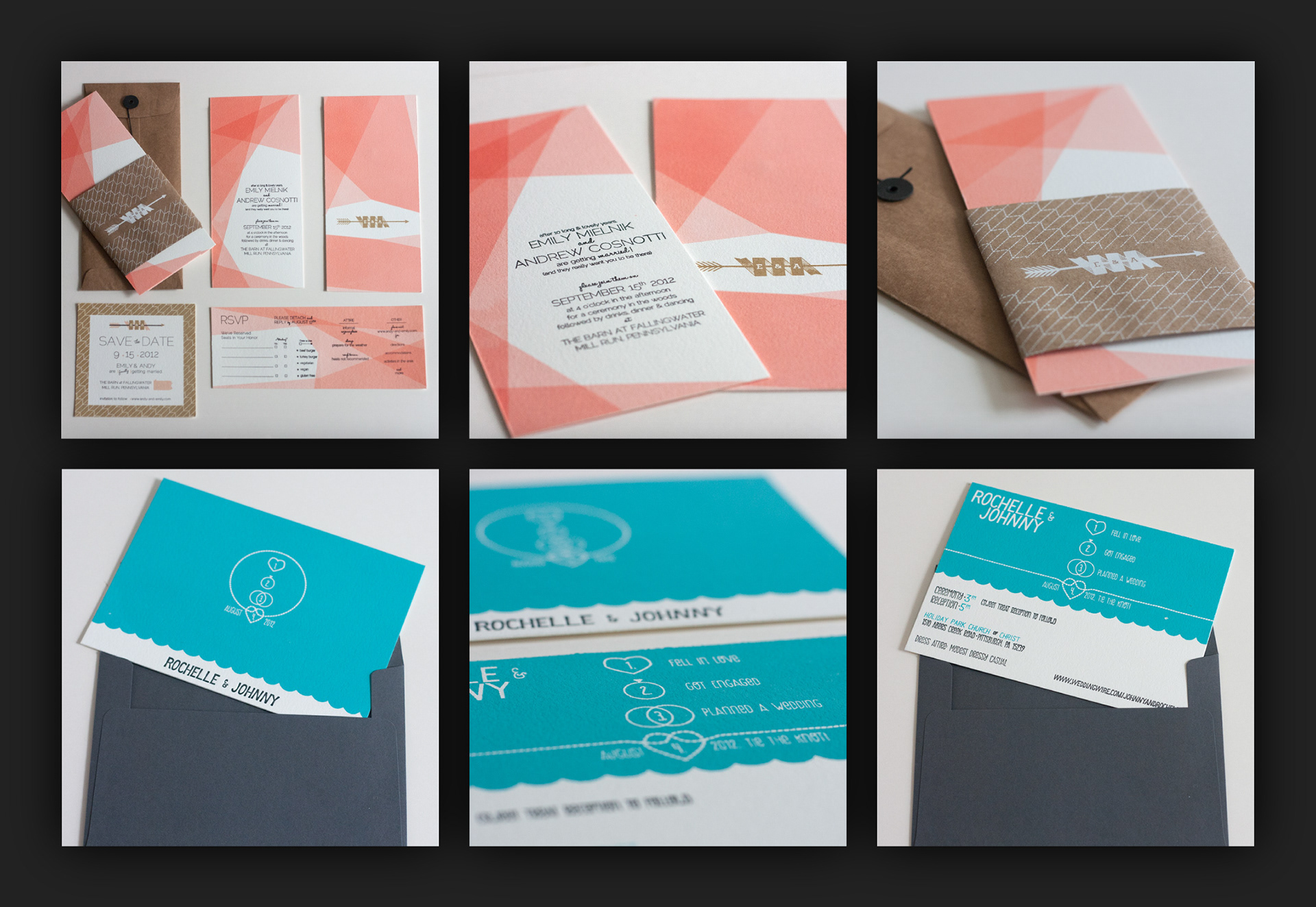 My love of design extends into my personal life. These invitation packages were completely designed and printed by me. Each set incorporates both screen printing and letterpress printing.